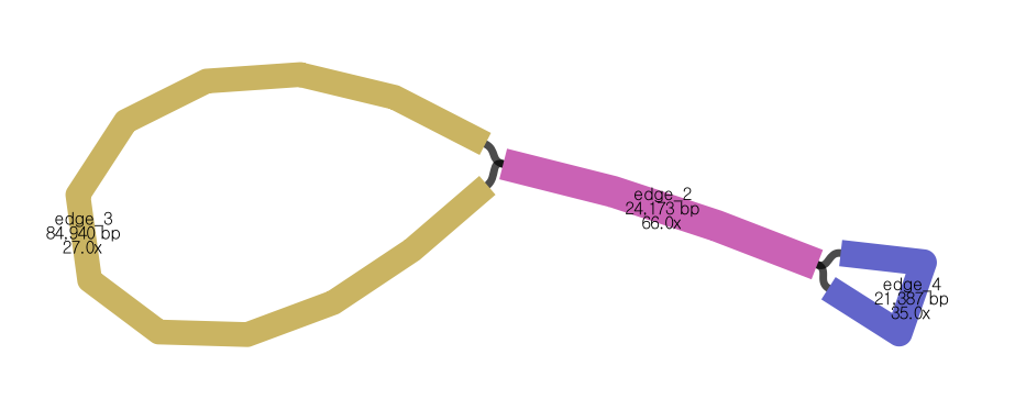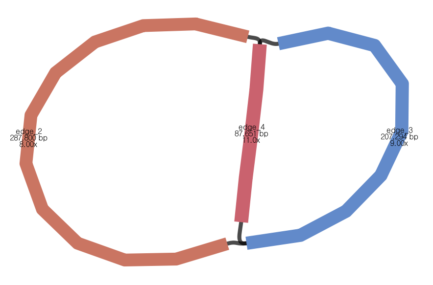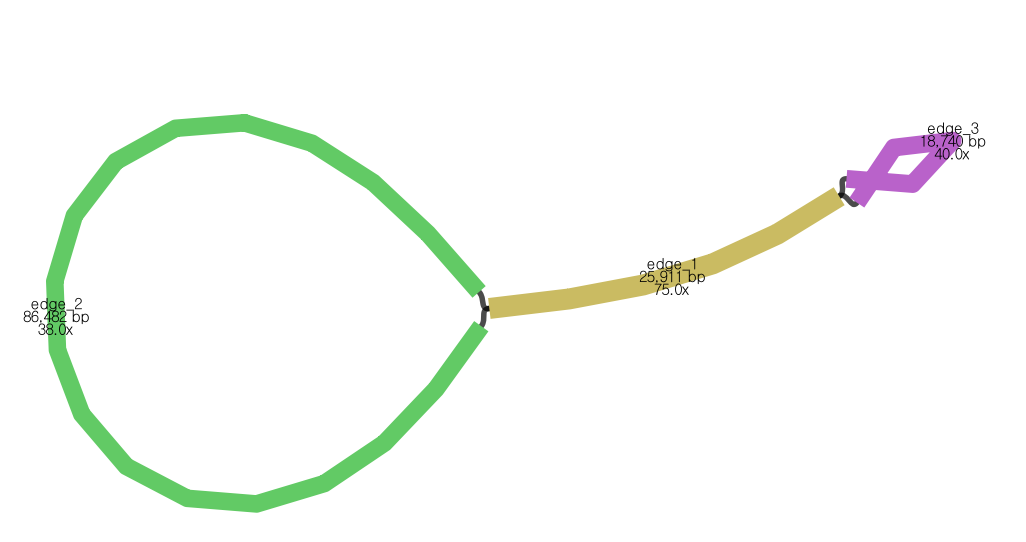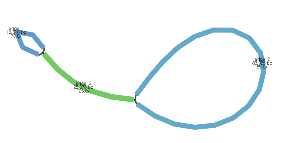 - 세 edge를 합친 길이가 전체 genome 서열로 보고할 281,790 bp임.