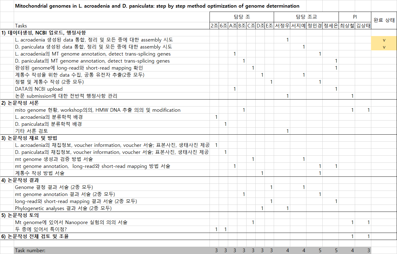 - 목표: 다양한 식물로부터의 미토콘드리아 유전체 결정